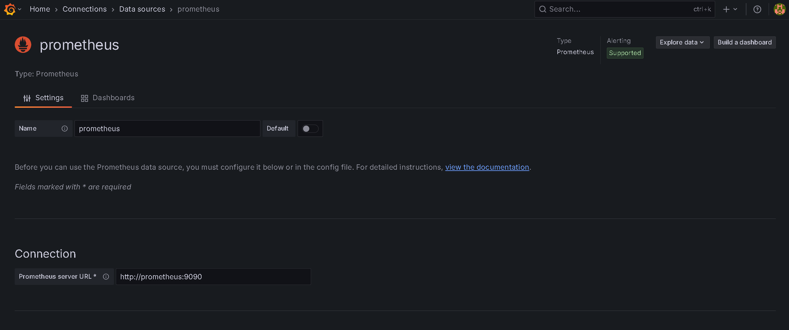 Here, you enter the Prometheus server URL as http://prometheus:9090.